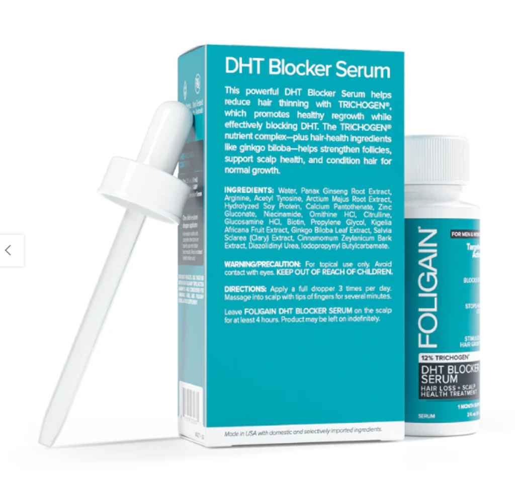 FOLIGAIN Hair Regrowth DHT Blocker Serum with 12% Trichogen is a cosmetic serum created for individuals concerned with the appearance of thinning hair. DHT, or dihydrotestosterone, is widely recognized as a hormone associated with changes in hair density and the visible pattern of thinning. While this cosmetic product does not alter or block hormones, it features a concentrated Trichogen nutrient complex designed to support a healthier-looking scalp environment for those concerned about DHT-related cosmetic effects.